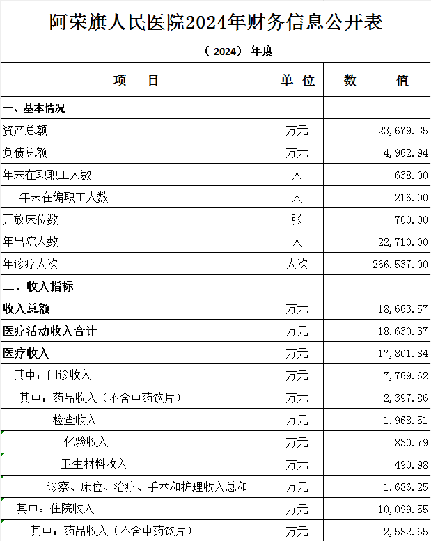 阿荣旗人民医院2024年财务信息公开表